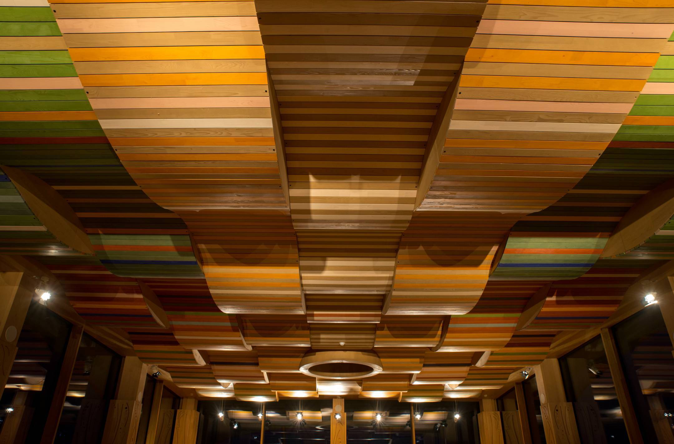 Seguendo le linee guida dello studio acustico del progettista Alberto Piffer, Silenzia ha realizzato un soffitto acustico in legno di abete certificato FSC, proveniente dalle foreste della Magnifica Comunità di Fiemme. Il soffitto è stato progettato per assorbire il riverbero prodotto dalle superfici vetrate, migliorando la resa acustica del pianoforte e la qualità dell’ascolto. La forma ondeggiante, unita alla scelta cromatica e a un’illuminazione studiata con attenzione, contribuisce a creare un ambiente di grande armonia e bellezza naturale.